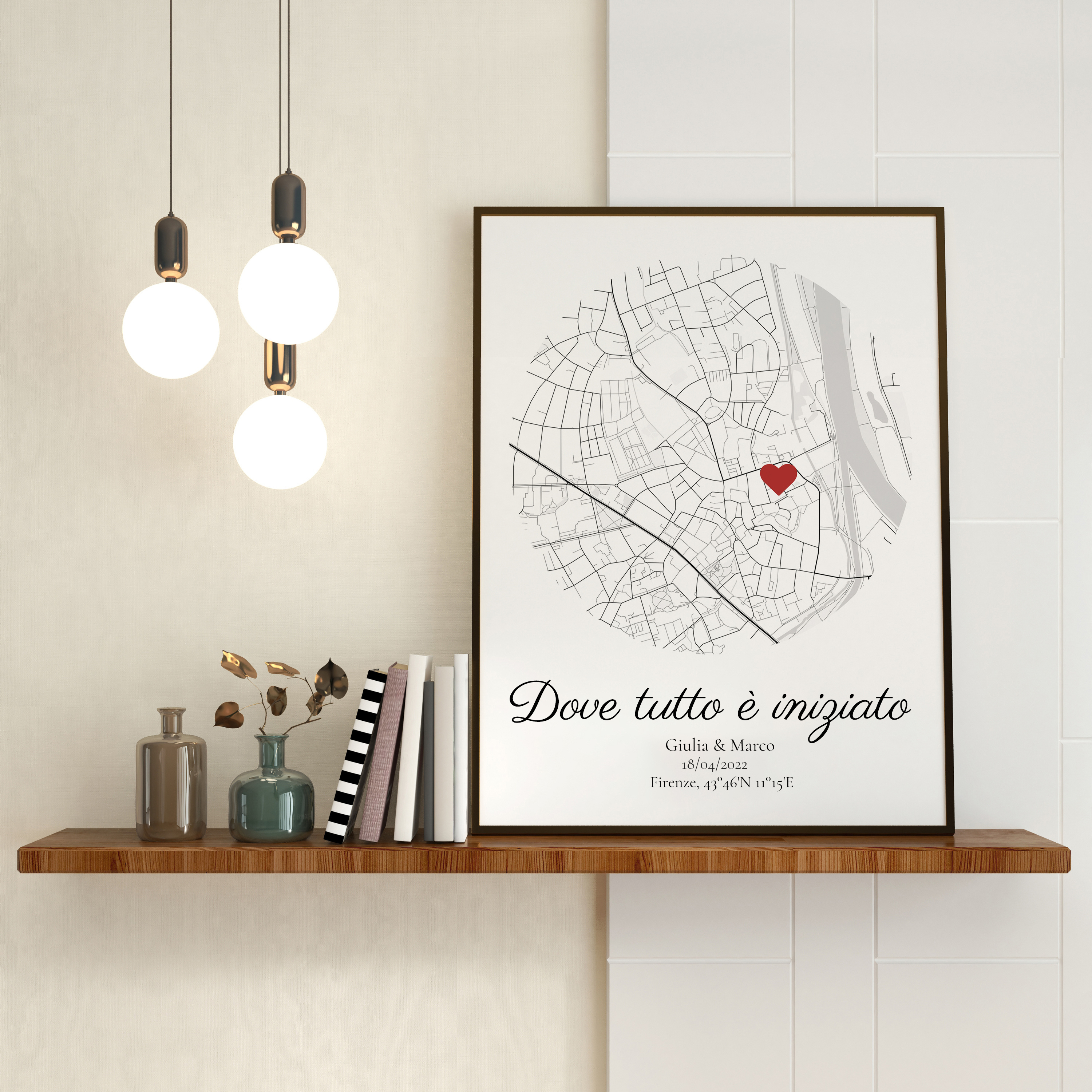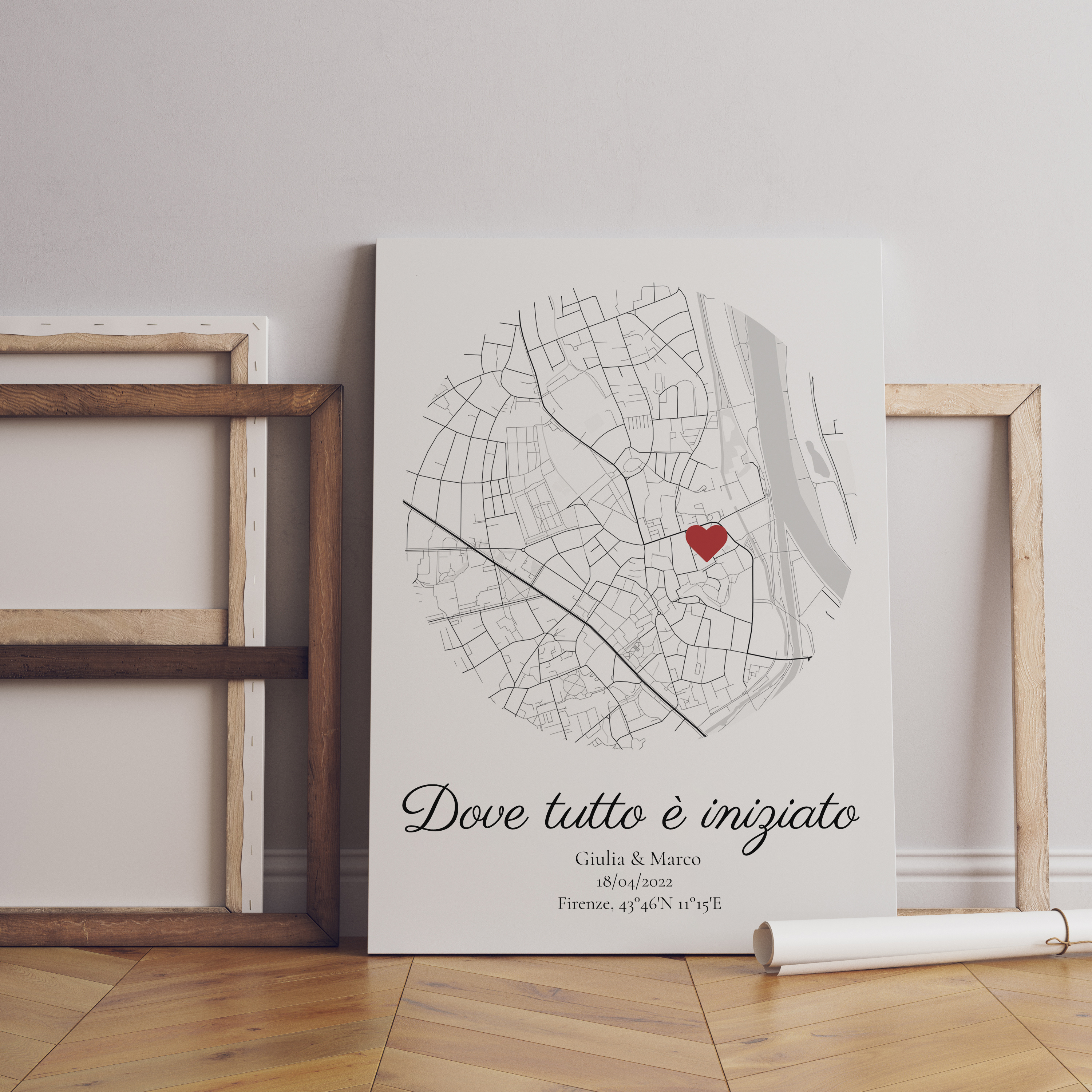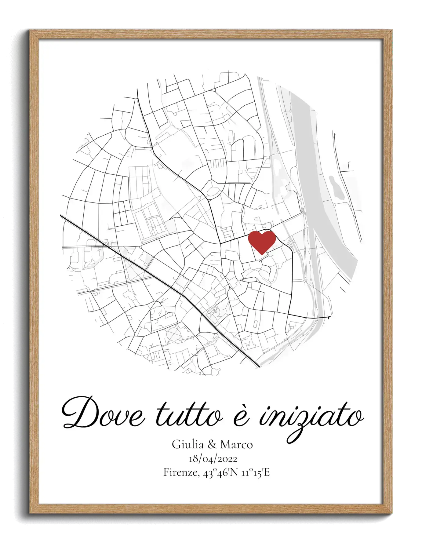 Celebra la vostra storia d'amore con una mappa personalizzata, ideale per ogni occasione speciale.