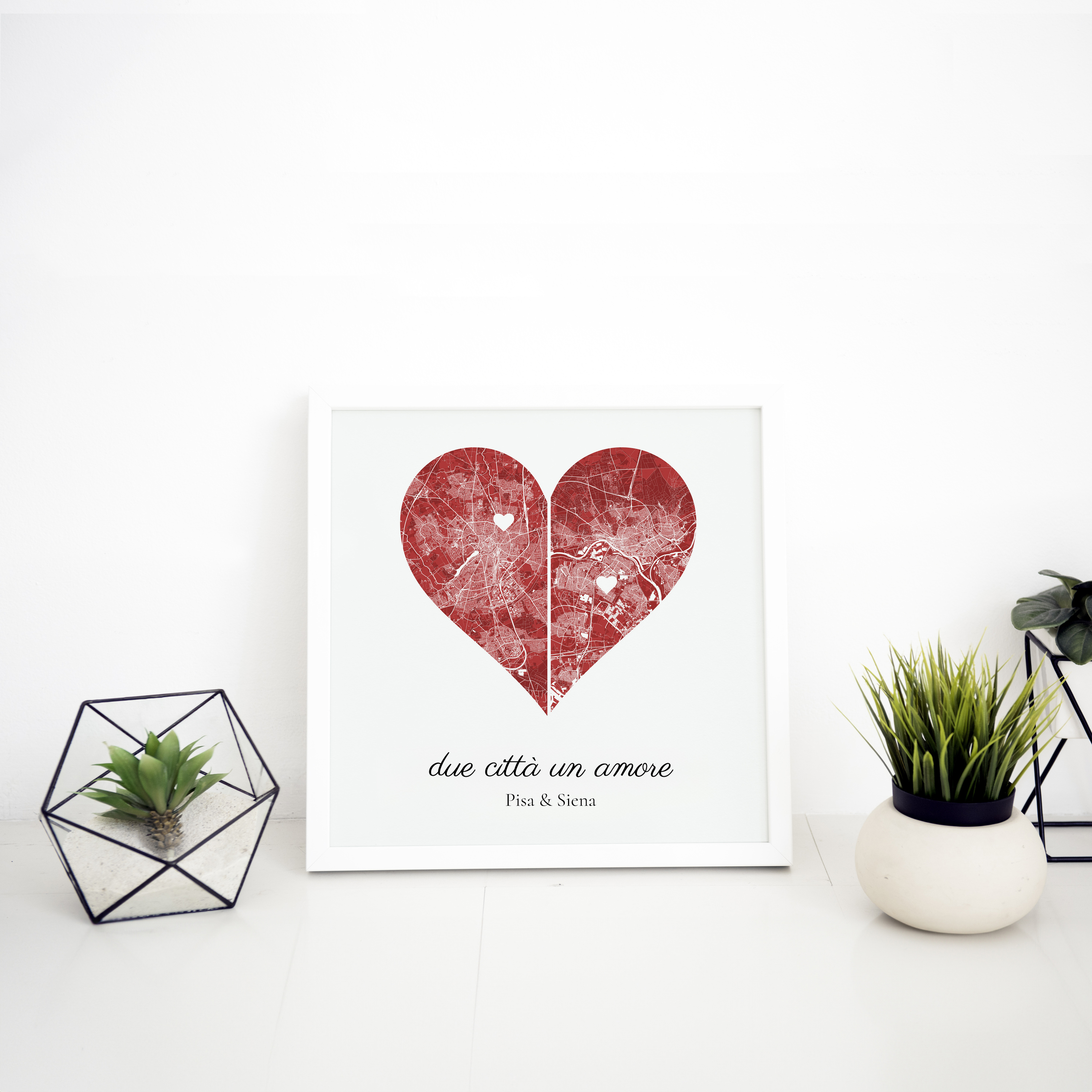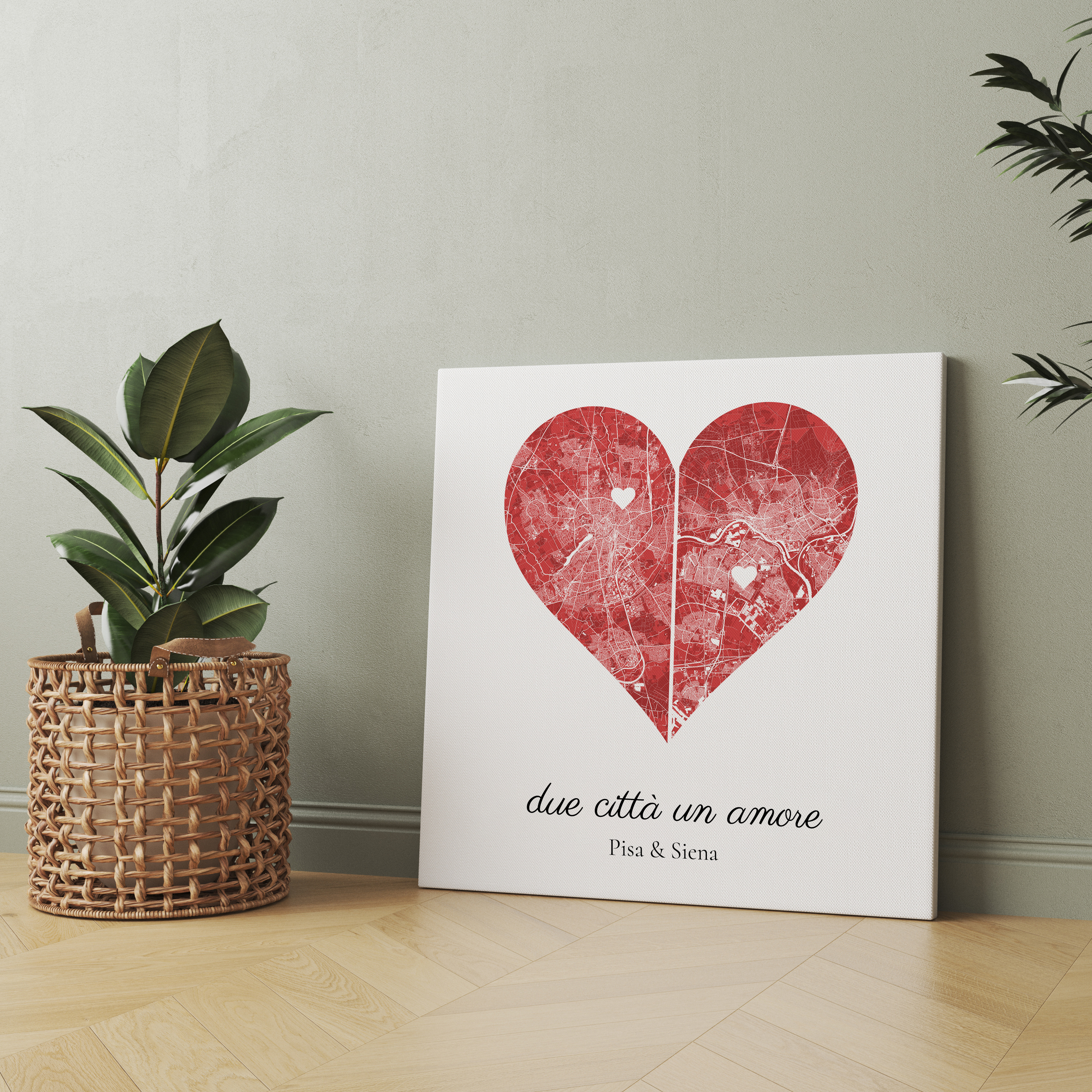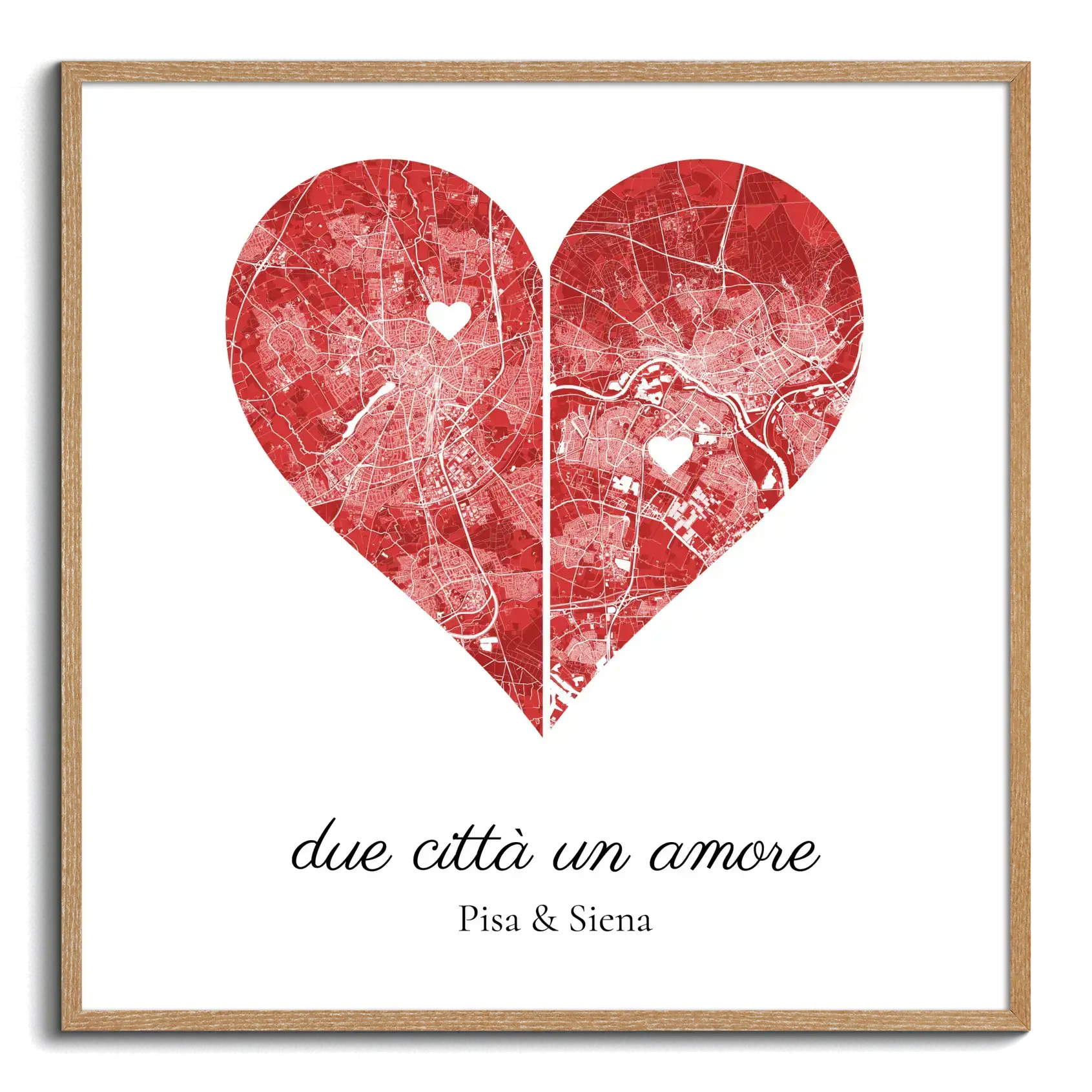 Scopri la magia delle città con la nostra carta personalizzata due città un amore. Ideale per coppie lontane o in relazioni a distanza questo design unisce due città in una forma di cuore: una a sinistra e l'altra a destra. Personalizza colori e testi per creare un dono speciale per anniversari o matrimoni e aggiungi un tocco di eleganza alla casa.