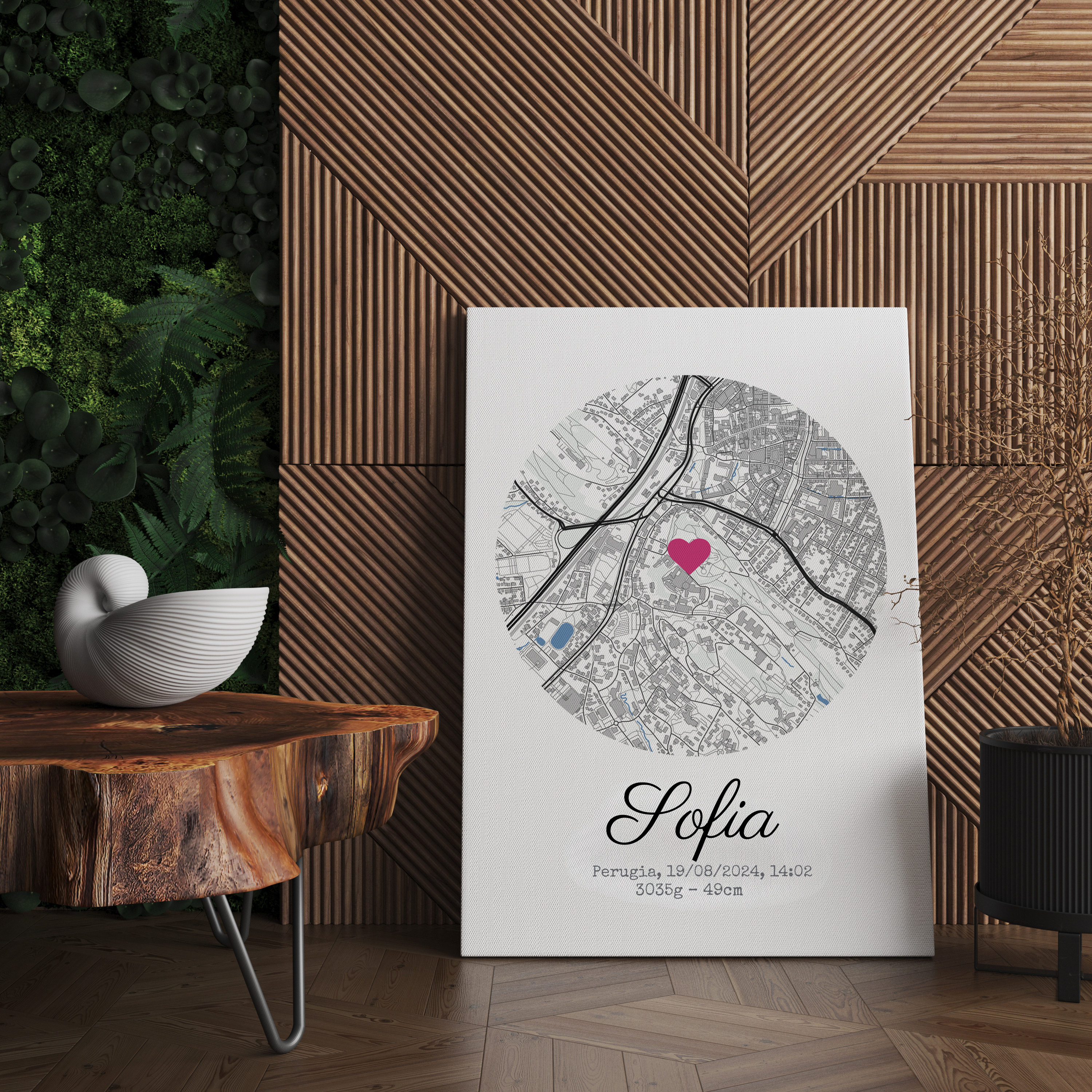 Crea il tuo poster personalizzato con la nostra Web-App. Immagina di avere una mappa della tua città del cuore o il luogo speciale in cui sei nato, reso unico con coordinate precise e dettagli significativi. Ad esempio, un poster di nascita che riporta il nome del tuo bambino, la data e il luogo di nascita, perfetto per decorare il suo spazio o come regalo affettuoso per amici o parenti.