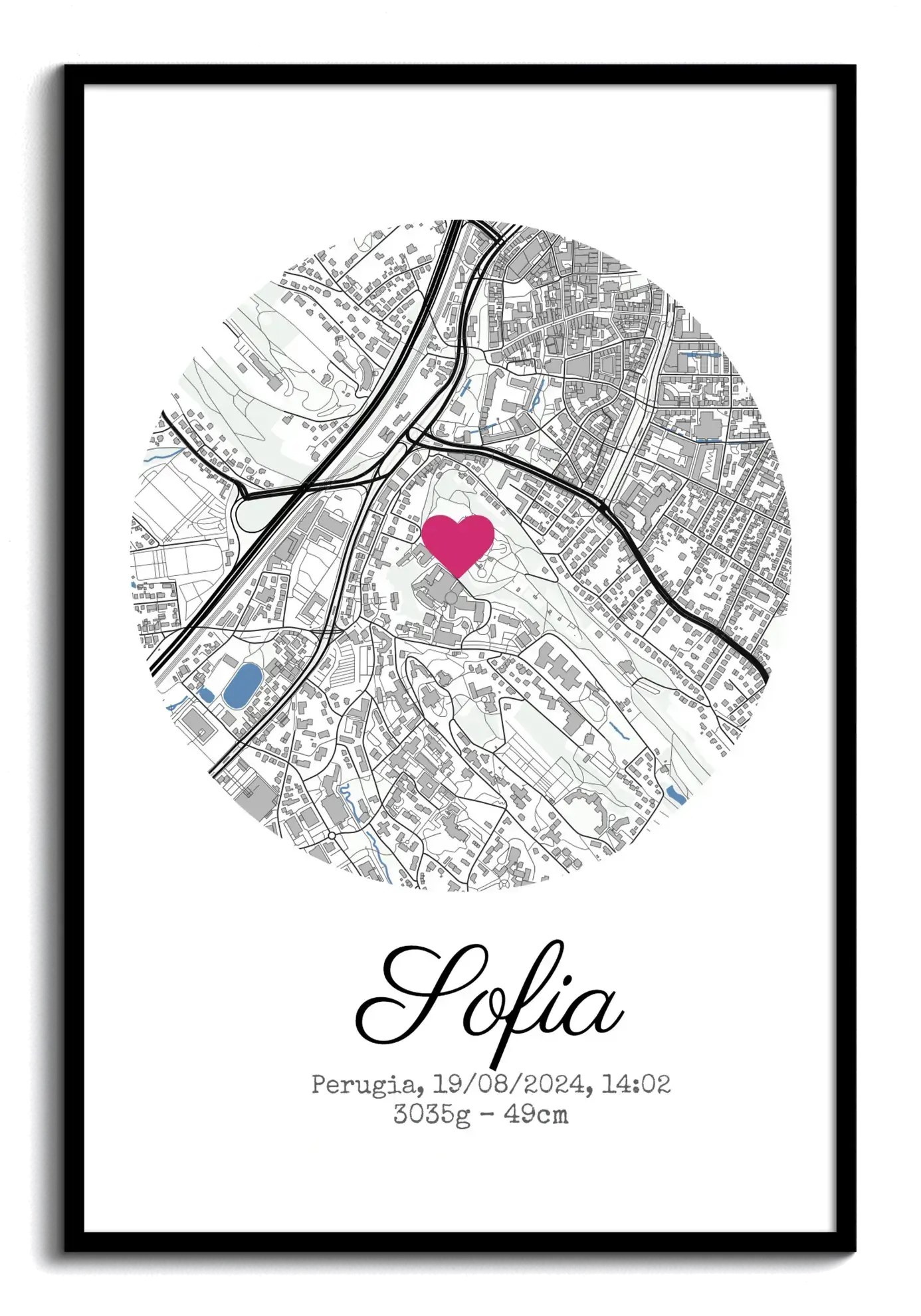 Le nostre mappe personalizzate sono perfette per qualsiasi occasione speciale. Che si tratti di un regalo per un anniversario, un compleanno, o un ricordo del tuo luogo preferito, la nostra gamma offre soluzioni creative per celebrare i momenti importanti della vita. Puoi anche creare un poster di nascita unico per immortalare l'arrivo di un nuovo membro della famiglia.